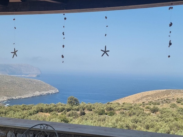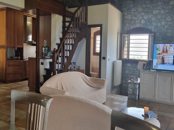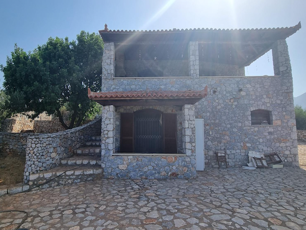 Surrounded by land of 4,000m2 with olive trees, this stone house enjoys a very private and serene setting with staggering views of sea and sunsets.
